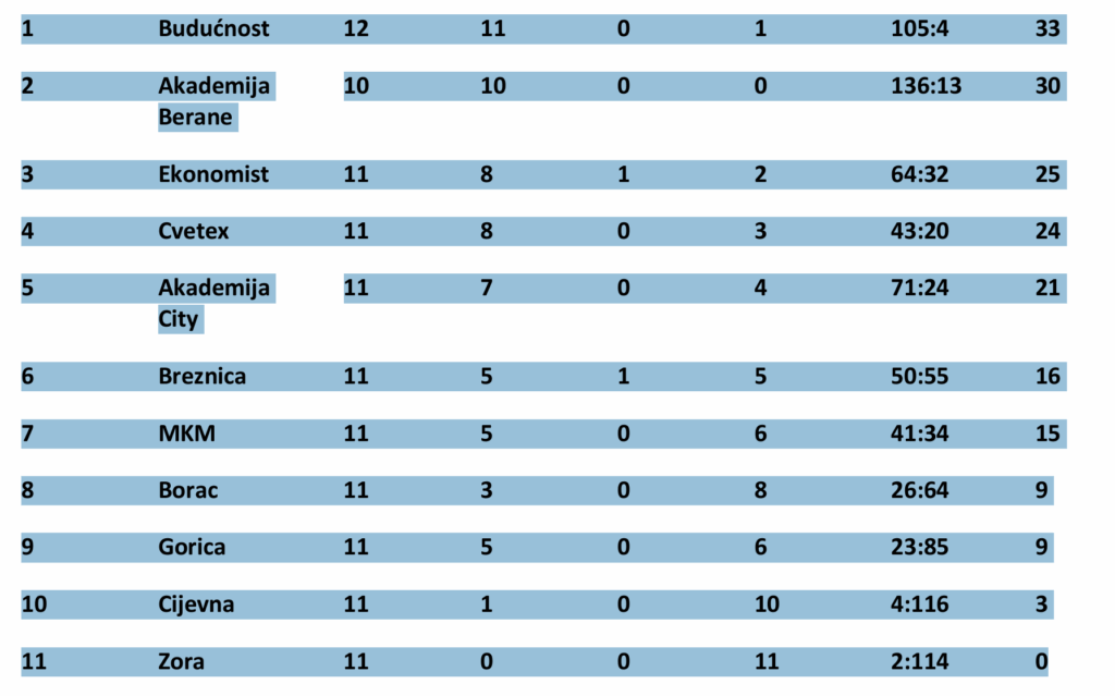 Zora – Akademija Berane 0:37